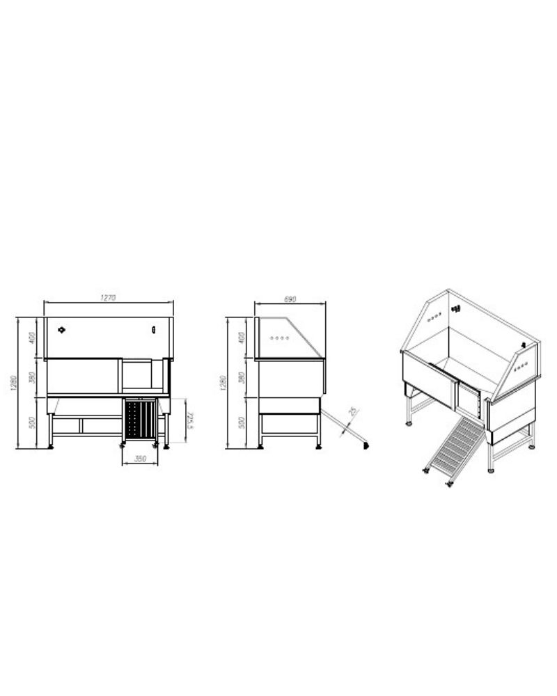 This swing ramp bath also features a non-slip ramp for safe access (which swings under the Bath when it is not required) this Bath is made of premium grade 304 stainless steel and with a heavy-duty tub designed for professional use & durability & strength for the largest dogs of approx. up to 60 kgs under normal use it will be rust free years.