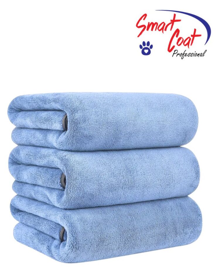 MicrofibreĀ large blue microfibre grooming towel now taking efficiency to a new level with these thick n thirsty microfiber towels as they absorb water faster than a conventional towel & unlike the chamio or absorption pet towels these do not get stiff when dry and they remain soft & being thick n thirsty as they absorb crazy amounts of water these microfibre towels can also be used for wrapping around any animal to keep drawing out the moisture from their coats/skin after a bath or wash down with the handy size of 140 cm x 70 cm machine washable quick drying