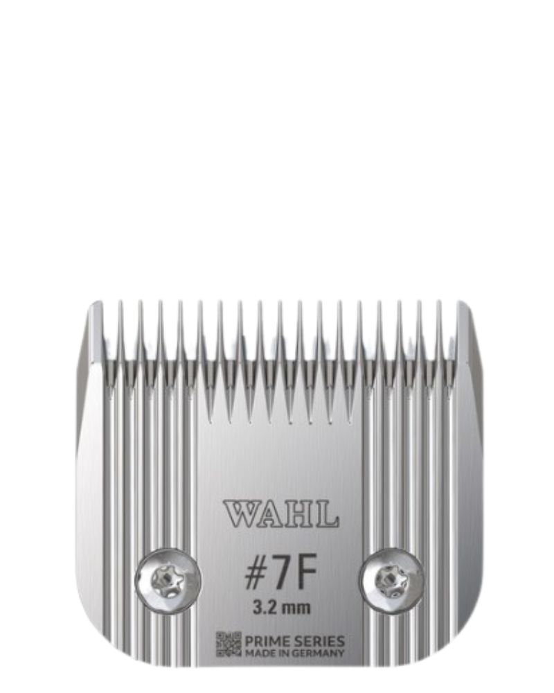 The Wahl Prime Series 7F Blade leaves on 3.2 mm which is a popular choice for dog grooming as it is a versatile and popular choice for dog grooming as this blade with longer teeth is ideal for the all over groom so you can have a balance between a clean tidy look while maintaining enough coat to protect the animals skin & gives the coat a smooth manageable appearance